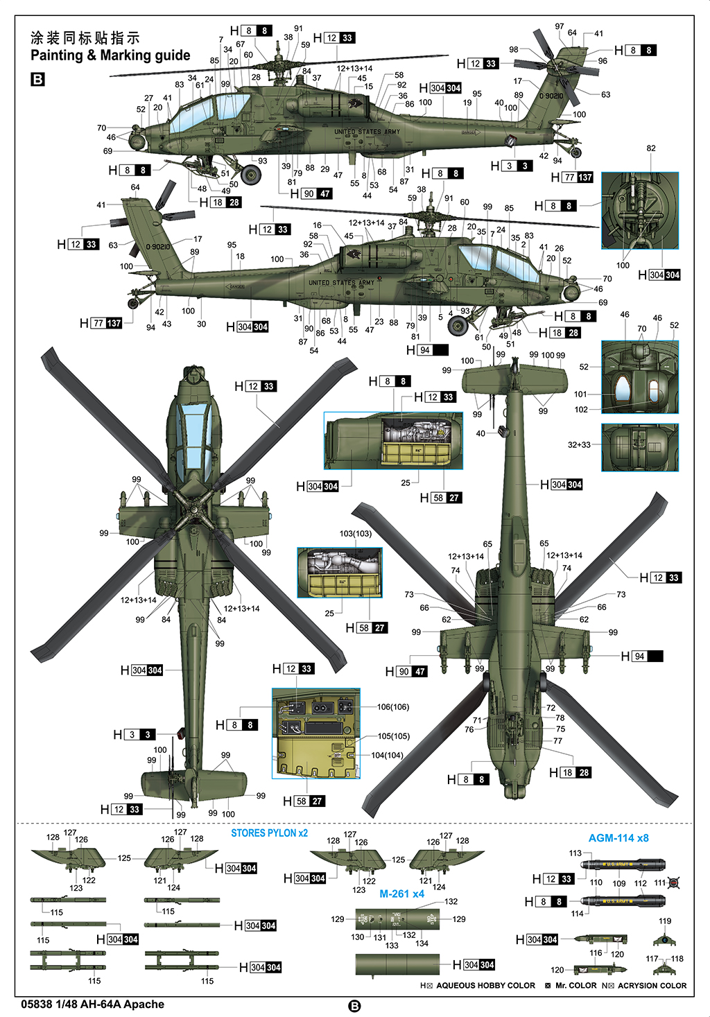 AH-64A“阿帕奇”是美国陆军主要的攻击直升机。它的快速反应能力及机载武器系统可以大纵深打击和迟滞敌方军队。“阿帕奇”可以在昼夜间和恶劣天气条件下全球部署作战。“阿帕奇”的主要武器为机头的30毫米M230链式机关炮和短翼下的“地狱火”反坦克导弹及“九头蛇”70毫米火箭弹。可以打击敌方装甲车辆或者重要目标。 “阿帕奇”具备完整的应急情况下保证飞机生存力的设备,应急时重要区域可以抵抗23毫米炮弹的多次攻击。AH-64可以用C-5、C-141和C-17运输机进行空运。