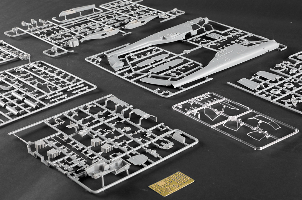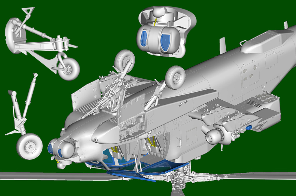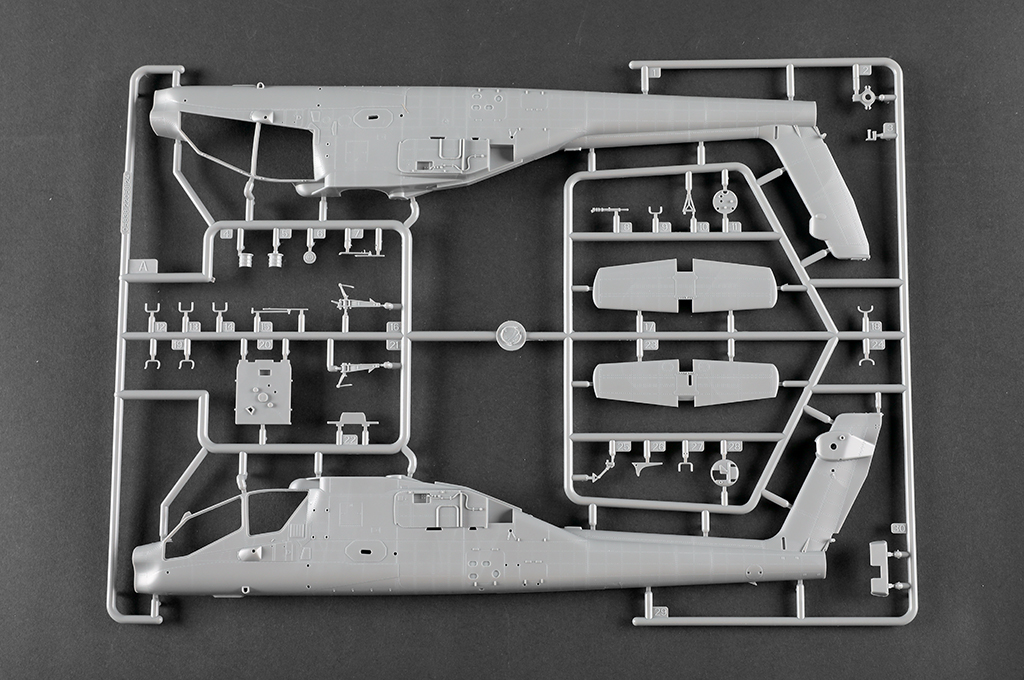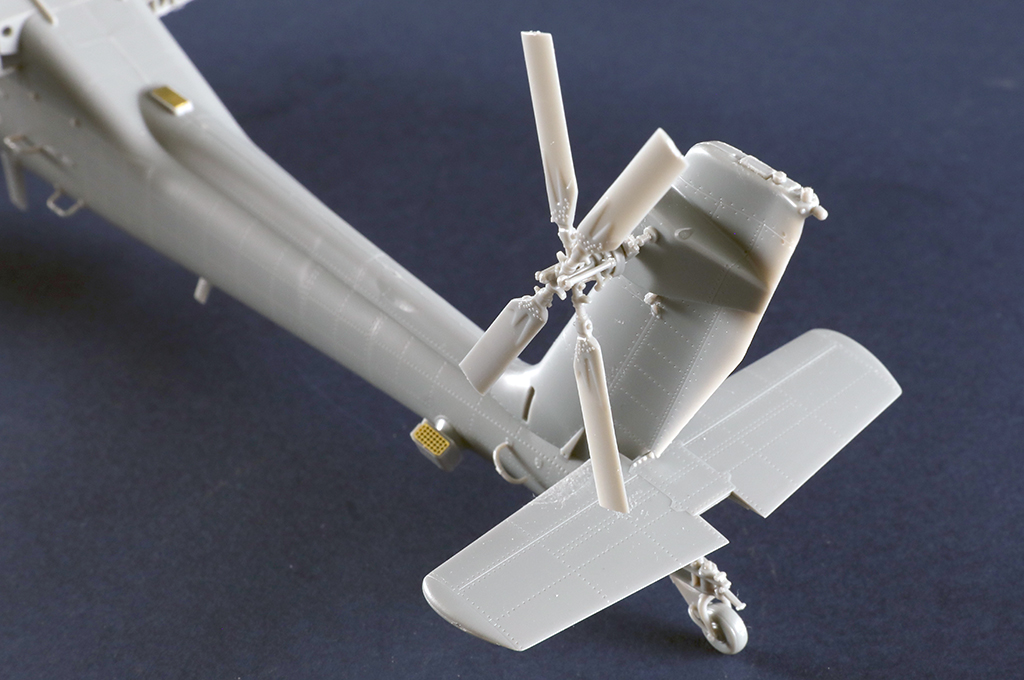 -fuselage moulded w/ authentic details -Finely detailed cockpit -Finely detailed rotors -Photo-etched parts included |