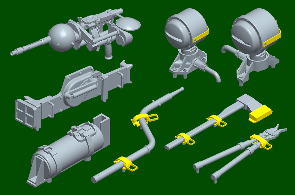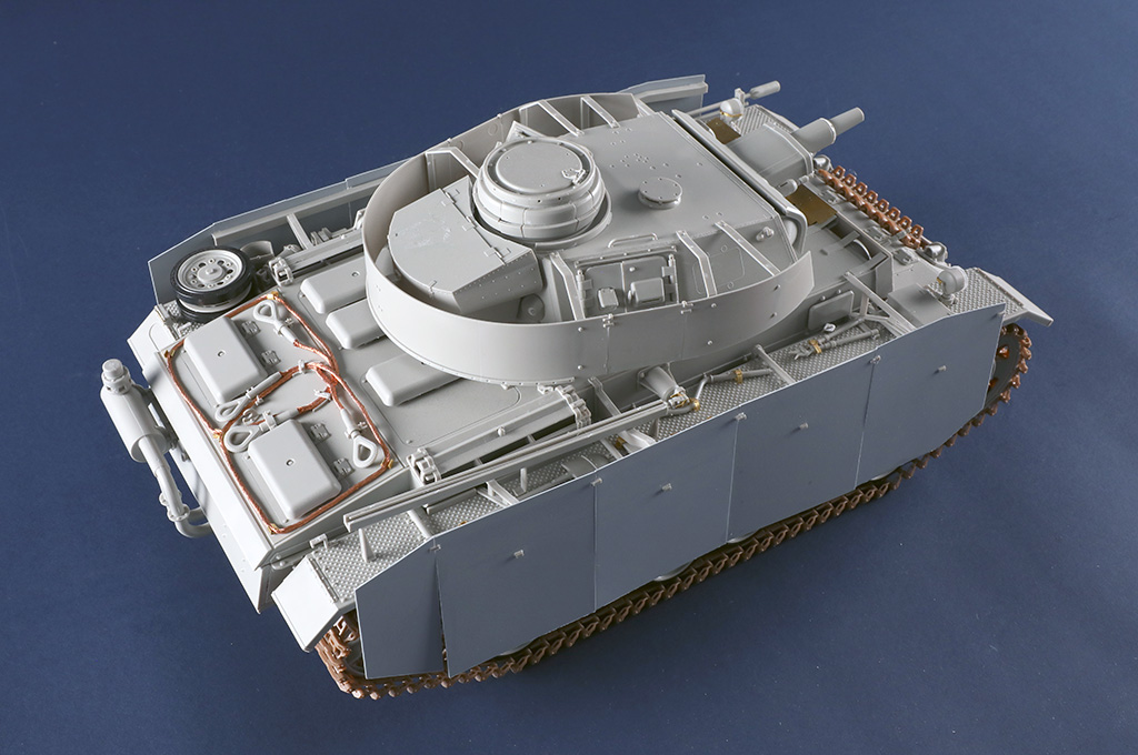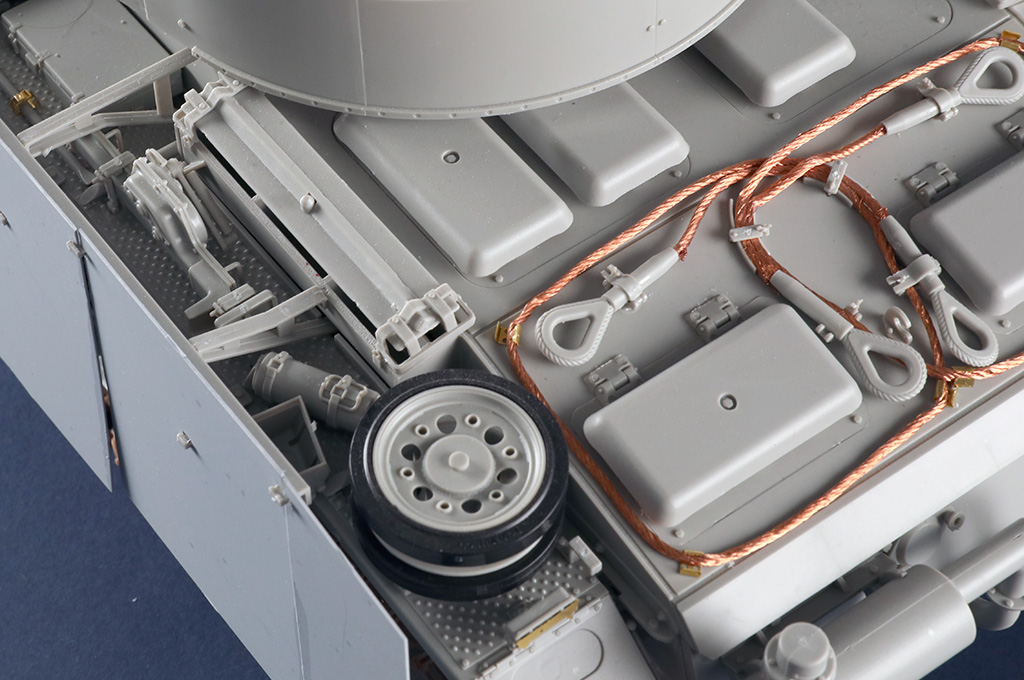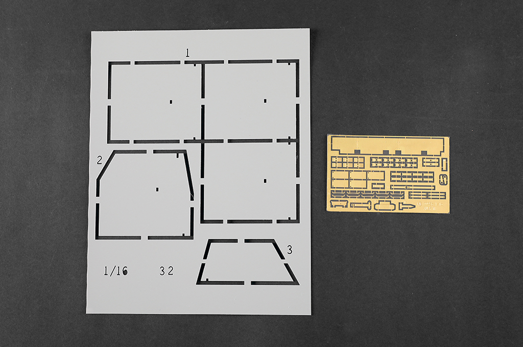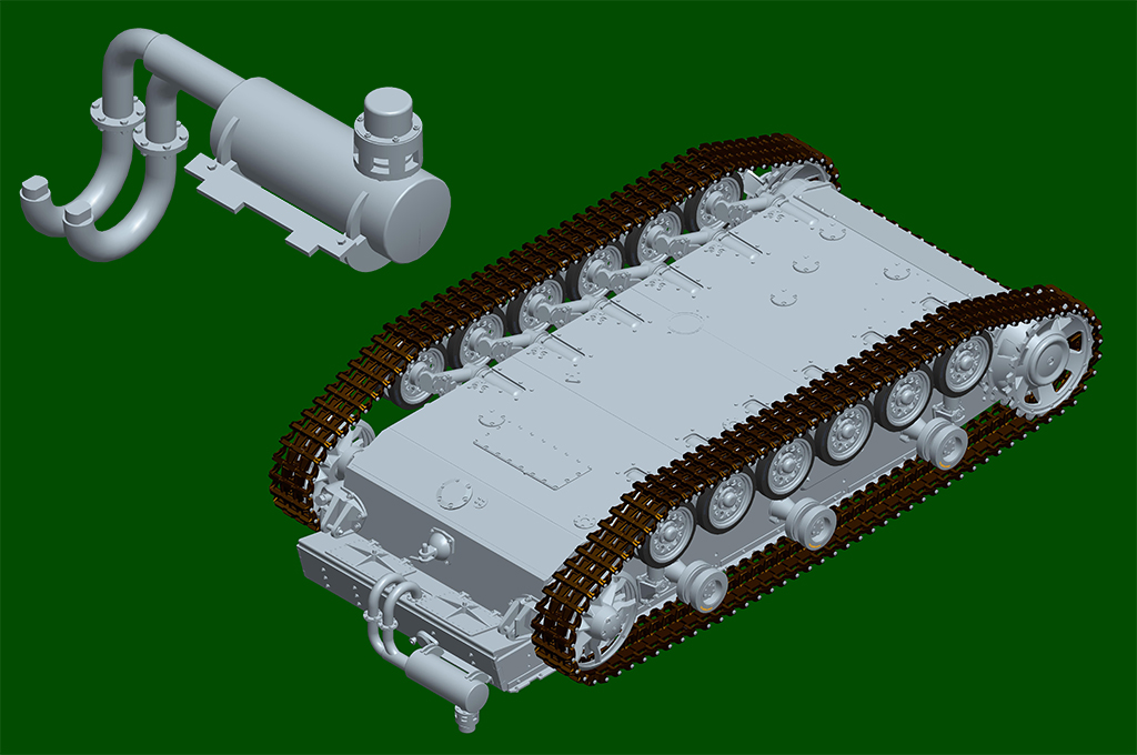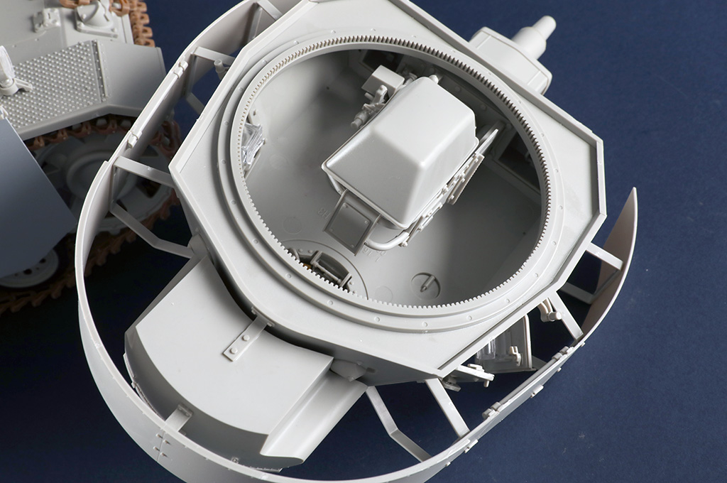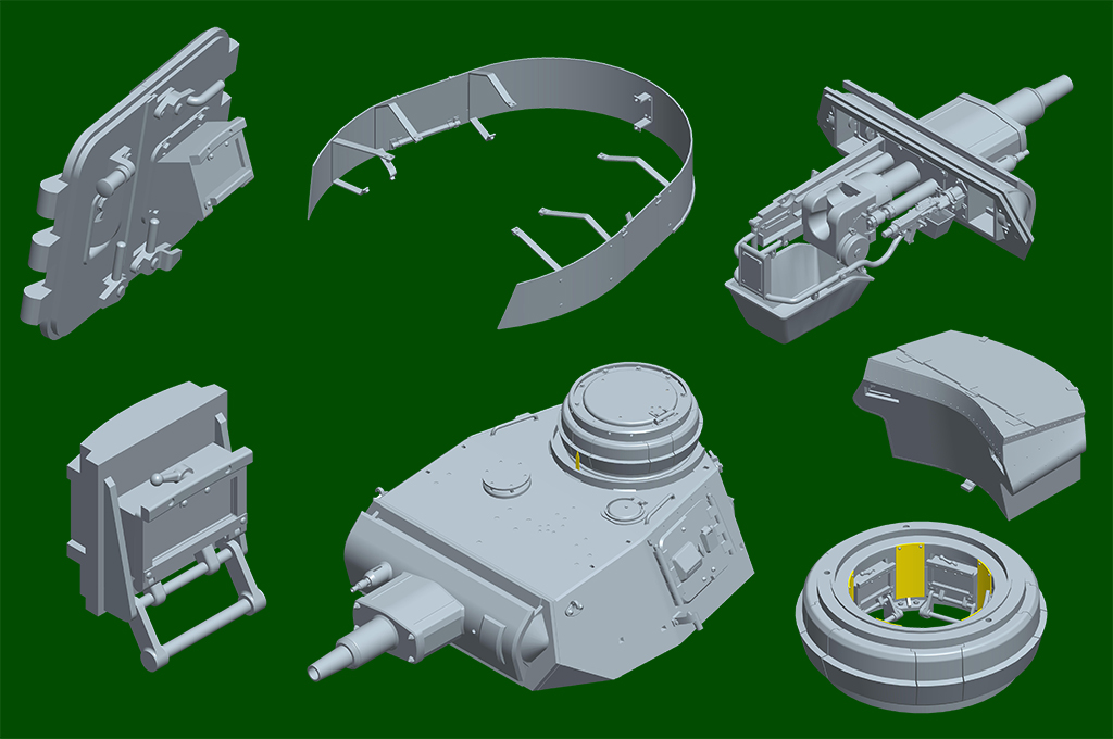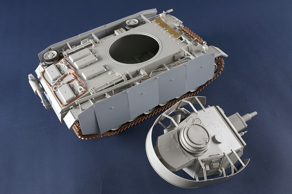 The kit consists of over 1600 parts >the kit w/refined detail >multi-slide moulded lower hull and upper hull >individual tracks links >Photo-eteched parts included |