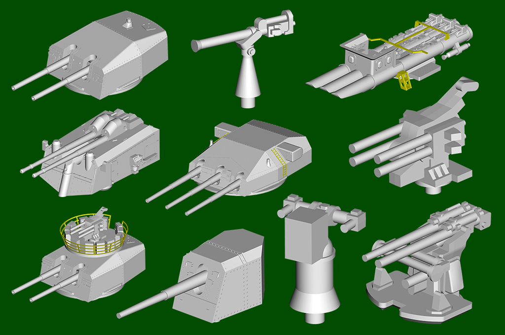 | Total Sprues | 17 sprues , decks and hull |
