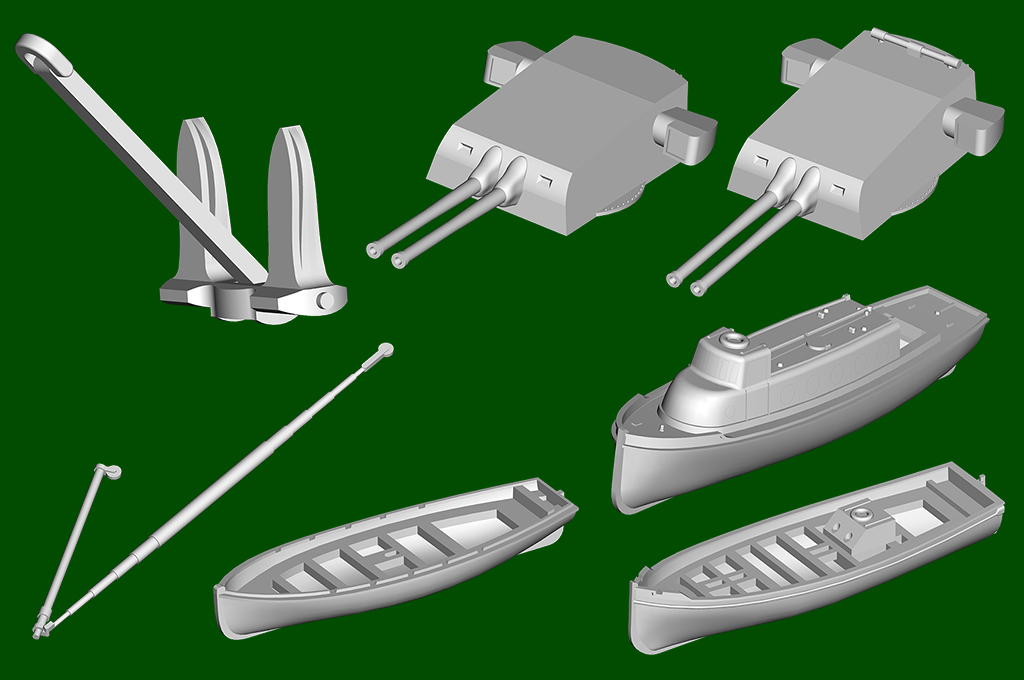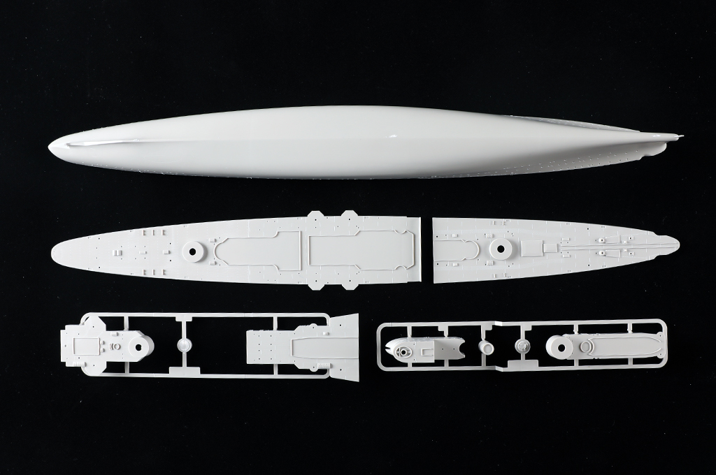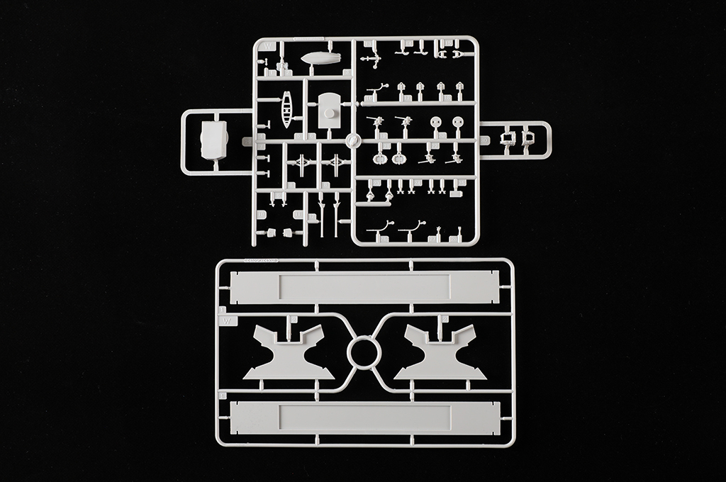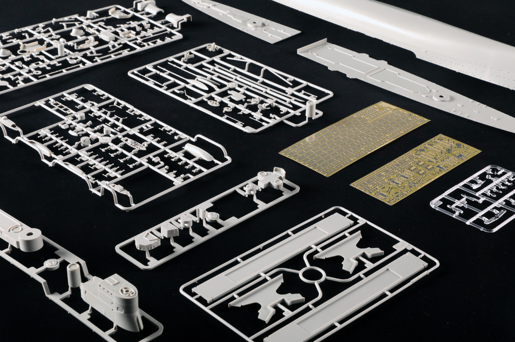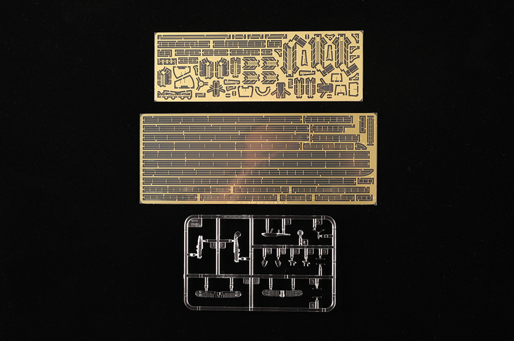 the kit contains over 520 parts - the hull made from two-directional slide molds - Deck wood pattern finely rendered - Contains display stand - photo etched parts included |